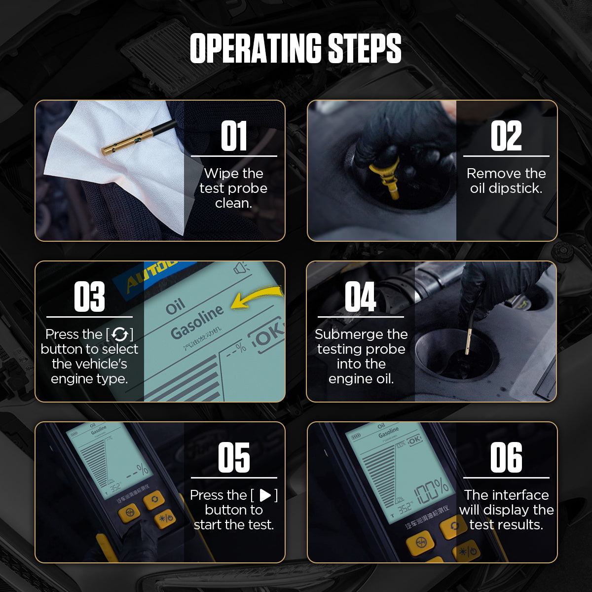 - Digital Display: Get clear, easy-to-read results that indicate oil quality, making it simpler to determine when an oil change is needed.