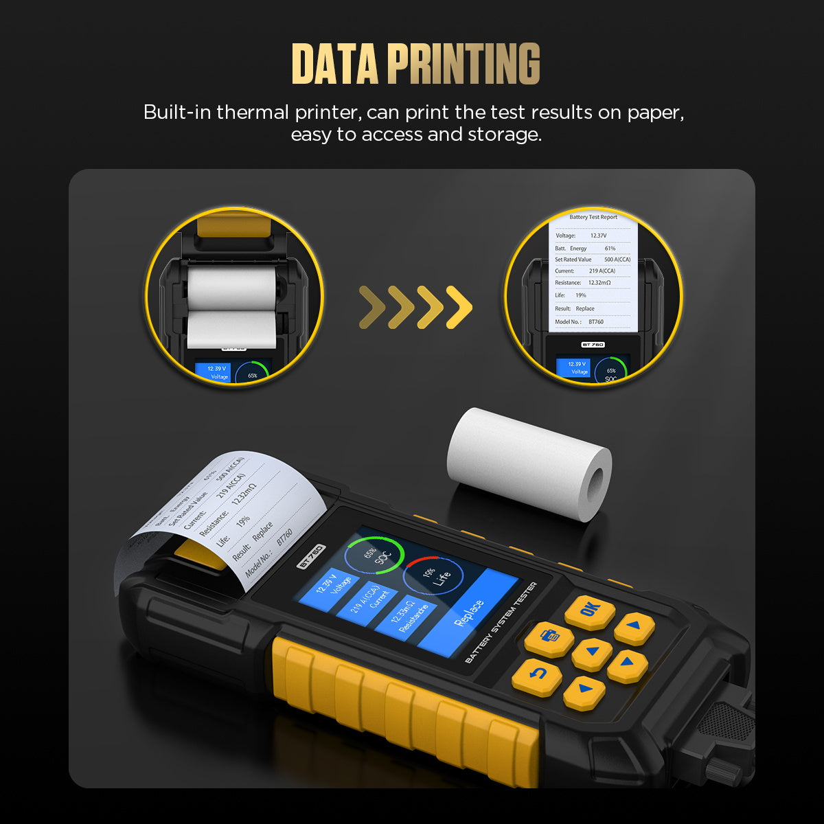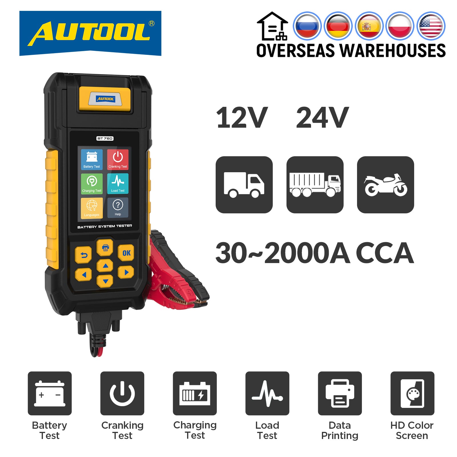 AUTOOL BT760 Car Battery Tester Analyzer 12V 24V Auto Cranking Charging Test Tool With Printer Diagnostic For Truck Motorcycle